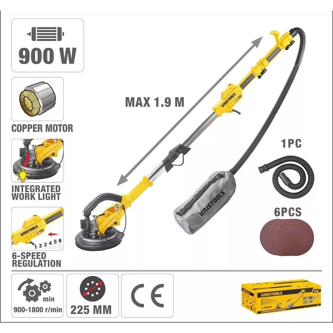 Útil para realizar terminaciones de lijado en partes altas como techos, paredes, pisos o superficies de Drywall permitiendo trabajar en lugares de difícil acceso para reducir los tiempos de trabajo.